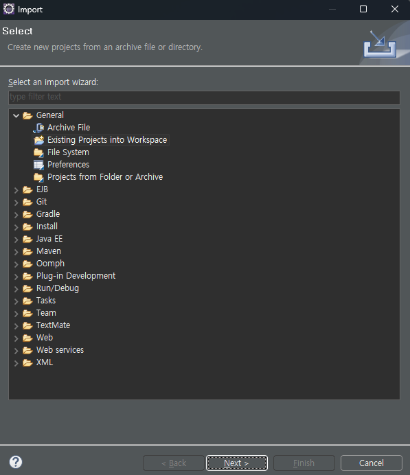 [이클립스]다른 컴퓨터에서 만든 프로젝트 import로 가져오기 본문