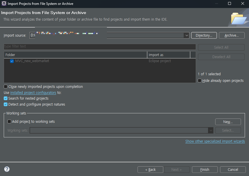 다른 컴퓨터에서 만든 프로젝트 import로 가져오기