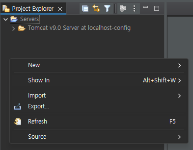 아까처럼 [Project Explorer]에서 마우스 우클릭을 하신 후 [Import]로 [Exisiting Projects into Workspace]를 추가해주세요.
