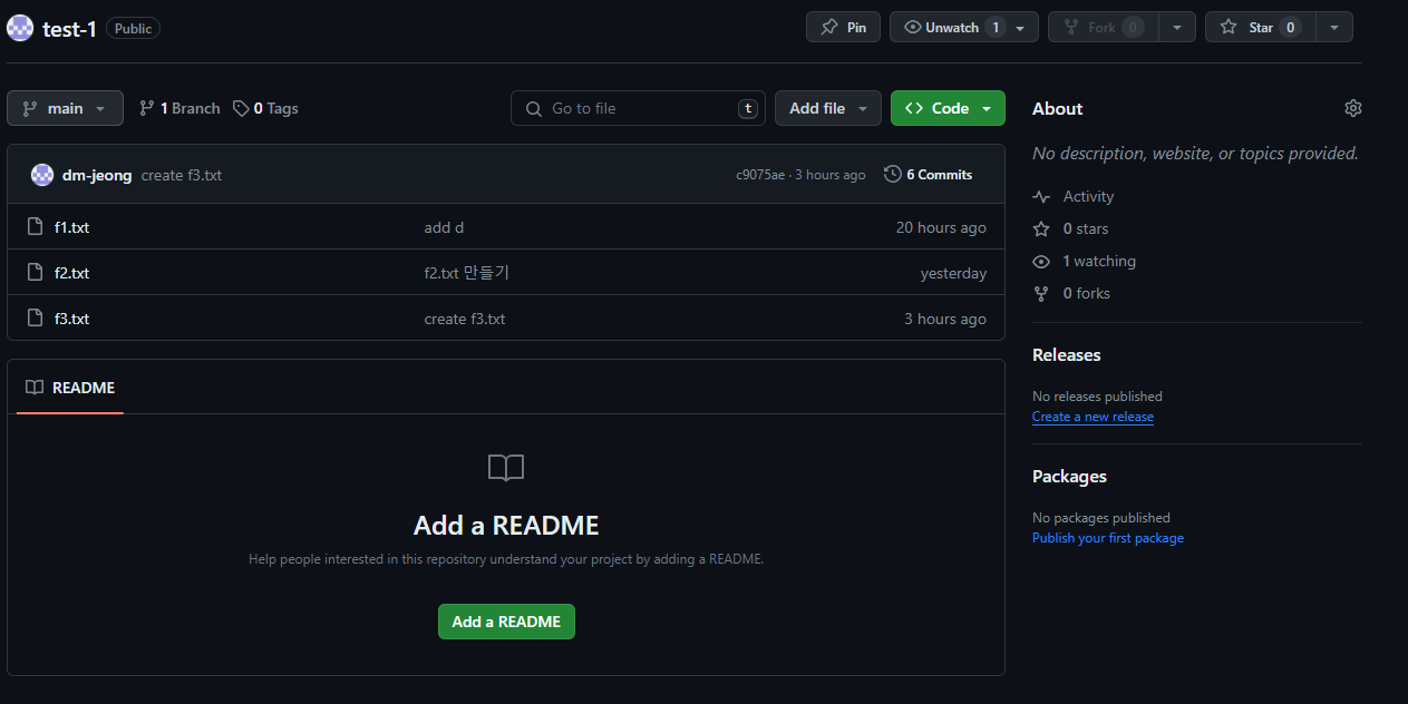 정답은 Add a README file을 체크하지 않았기 때문입니다.