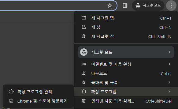 크롬 브라우저 오른쪽 상단에서 [확장 프로그램] - [Chrome 웹 스토어 방문하기] 클릭 시 새로운 크롬 웹 스토어로 이동합니다.