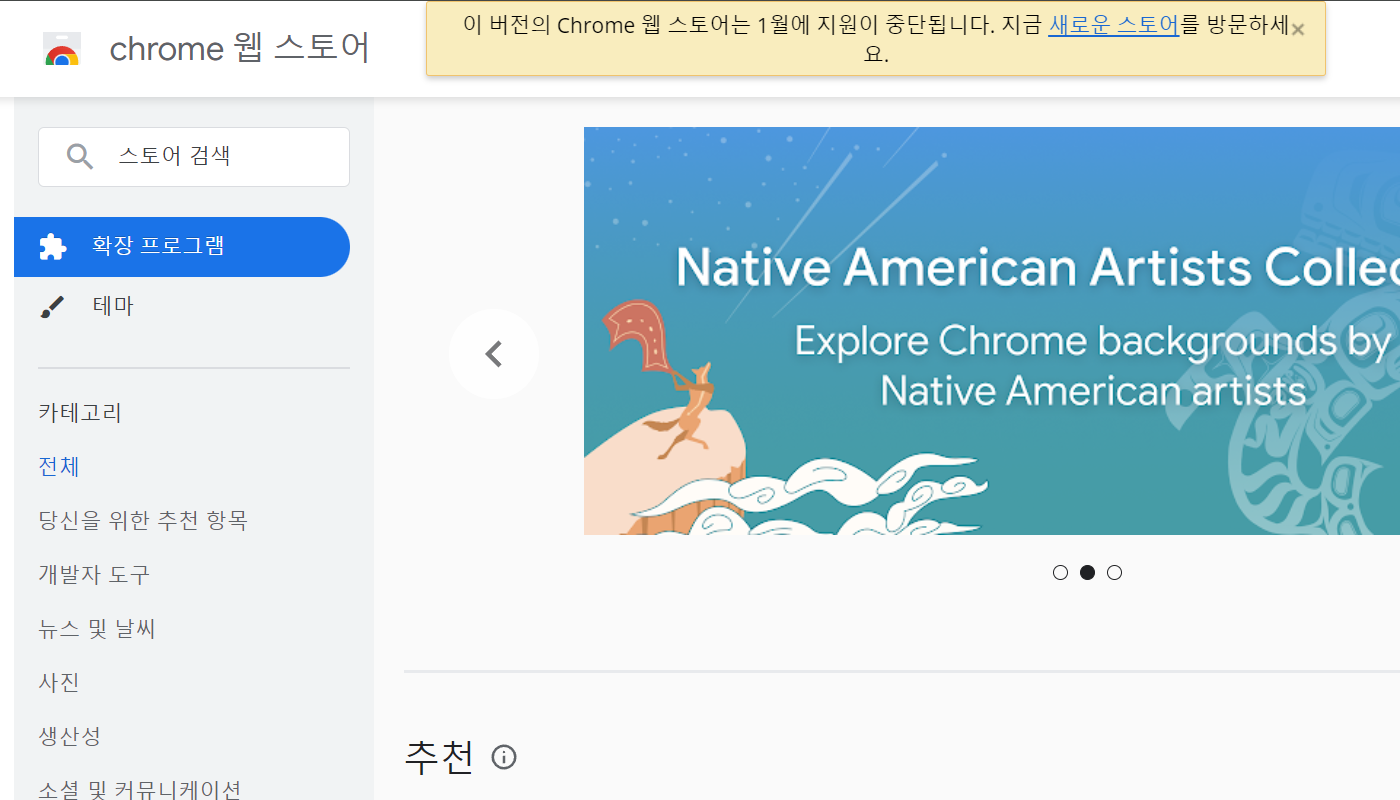 크롬 웹 스토어 구버전이 2024년 1월에 지원이 종료됩니다.