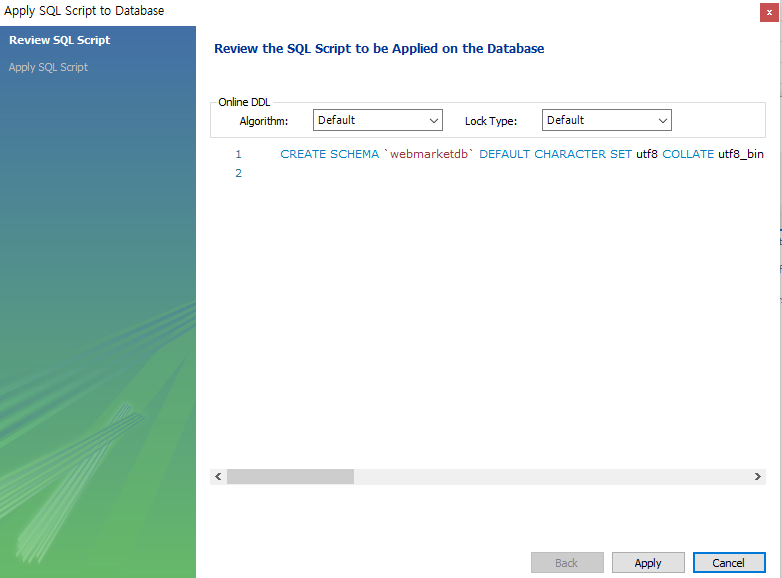 - Charset과 Collation으로 문자열 인코딩을 설정합니다. 저는 한글을 고려해서 utf8과 utf8_bin으로 설정하였습니다.