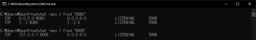 이후 프로세스 ID(PID)를 확인합니다. 저의 경우는 5996입니다.