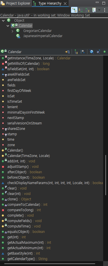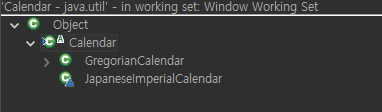 Calendar 클래스로 부터 상속받은 GregorianCalendar와 JapaneseImperialCalendar를 확인하실 수 있습니다.