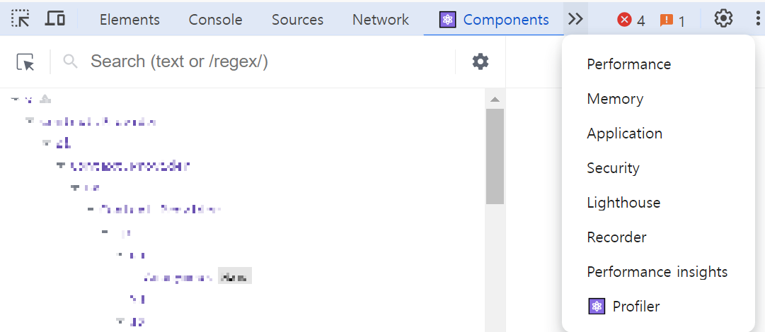 브라우저에서 개발자 도구(단축키 F12)를 여시면 안에 리액트 개발자 도구가 나타납니다.